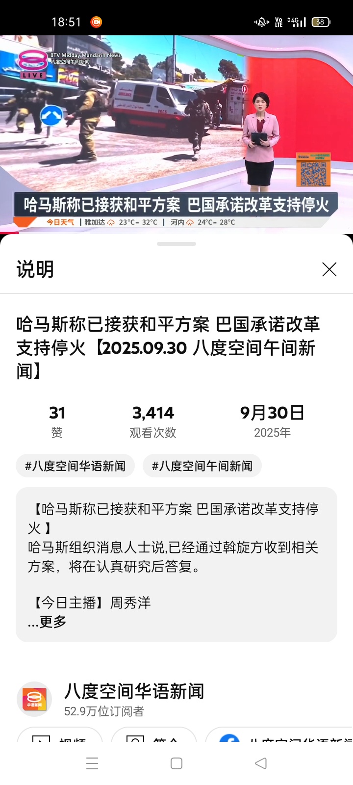 哈马斯称已接获和平方案 巴国承诺改革支持停火【2025.09.30 八度空间午间新闻】